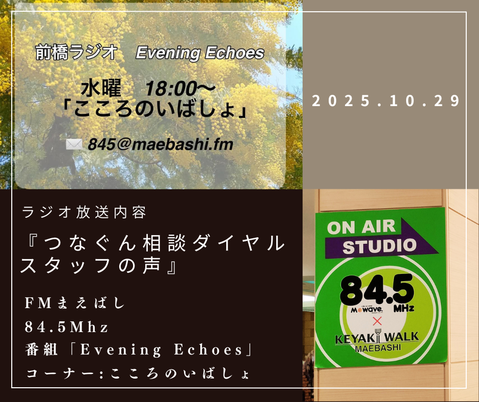📻 この内容は、ラジオ番組『EVENING ECHOES』のコーナー【こころのいばしょ】(まえばしCITYエフエム 84.5MHz)