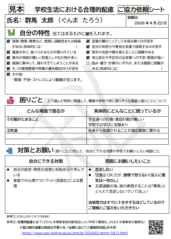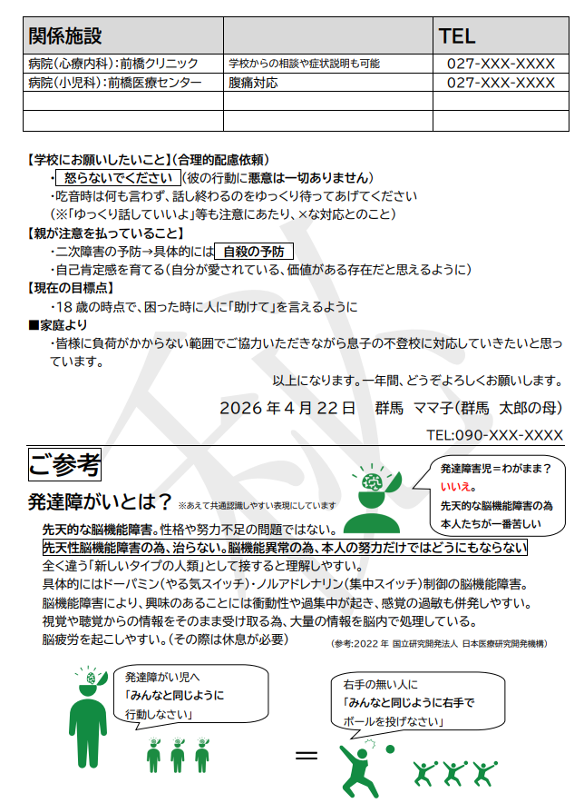 我が家では毎年、学年が上がると 2枚の紙 を先生にお渡しして、 一言だけお願いを伝えています。